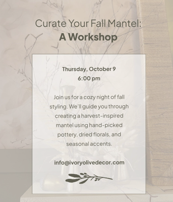 🍂 Our Fall Mantel Workshop happening on October 9th and we’re diving into all things cozy, layered, and seasonal.