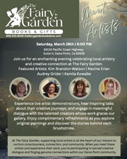 Join us for an enchanting evening celebrating local artistry and creative connection at The Fairy Garden. Featured Artists: Kim Brandon-Watson | Audrey Grider | Kamila Kowalke | Nevine Erian