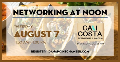Join us for a networking luncheon on Thursday, August 7th from 11:30am to 1:00pm and promote your business to fellow Chamber members and local businesses. This month's luncheon will be at Cali Costa!